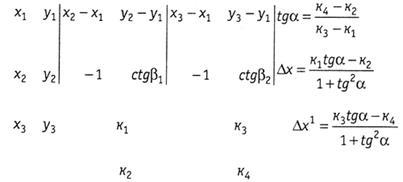 как минимум на три опорные точки с известными координатами. По формулам обратной угловой засечки вычисляют координаты точки К'