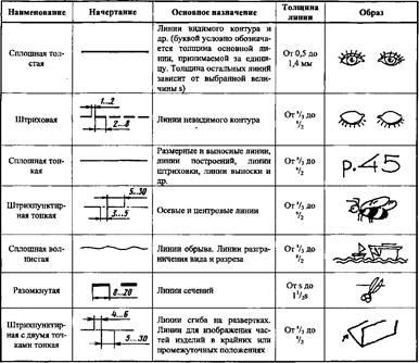 При выполнении чертежей применяют линии разной толщины и начертания в соответствии с ГОСТ 2.303–68. Каждая из них имеет свое значение.