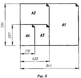 Чертежи и другие конструкторские документы промышленности и строительства выполняют на листах определенных размеров. Форматы листов определяются размерами внешней рамки (выполненной тонкой линией). Обозначения и размеры сторон должны соответствовать указанным на рис. 6.