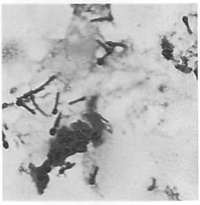Рис. 5. Возбудитель Clostridiumtetani в раневом содержимом (окраска карболовым фуксином)