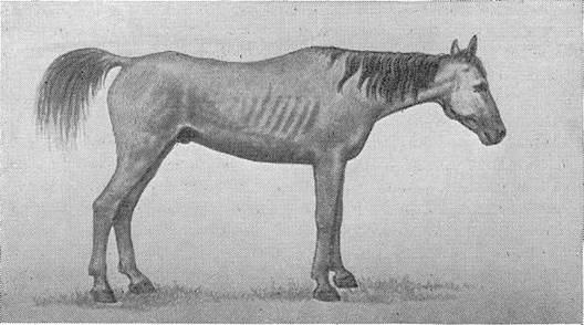 Рис. 2. Резкое сокращение мышц тела у лошади, больной столбняком