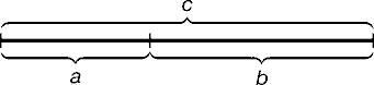 Суть задачи заключается в следующем. Разделив отрезок AB точкой С в таком отношении, чтобы большая часть отрезка СВ так относилась к меньшей части АС, как отрезок АВ к своей большей части СВ, то есть