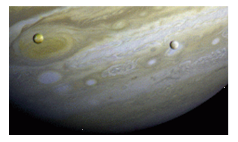 Юпитер - четвертый по яркости объект нашего неба (после Солнца, Луны и Венеры, но иногда Марс бывает более ярким). Он был известен с доисторических времен. Открытие Галилео в 1610 году четырех больших спутников Юпитера Ио, Европы, Ганимеда и Каллисто было первым открытием, показавшим, что может существовать иной центр движения, и не все тела движутся вокруг Земли. Это было главным доказательством в пользу гелиоцентрической теории Коперника о движении планет. Галилео вынуждали отречься от своих убеждений, и он был заключен в тюрьму до конца его жизни.