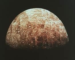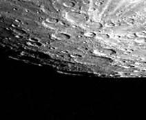 С пролетной траектории космического аппарата “Маринер-10” в 1974 г. было сфотографировано свыше 40% поверхности Меркурия с разрешением от 4 мм до 100 м, что позволило увидеть Меркурий примерно так же, как Луну в темноте с Земли. Обилие кратеров – наиболее очевидная черта его поверхности, которую по-первому впечатлению можно уподобить Луне.