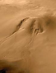 В прошлом огромную роль в формировании марсианского рельефа играла проточная вода. На первых этапах исследования Марс представлялся астрономам пустынной и безводной планетой, но когда поверхность Марса удалось сфотографировать с близкого расстояния, оказалось, что на старых высокогорьях часто встречаются словно бы оставленные текущей водой промоины. Некоторые из них выглядят так, будто много лет назад их пробили бурные, стремительные потоки. Тянутся они иногда на многие сотни километров. Часть этих "ручьев" обладает довольно почтительным возрастом. Другие долины очень похожи на русла спокойных земных рек. Своим появлением они, вероятно, обязаны таянию подземного льда.