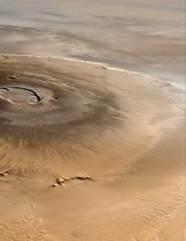 Вулканы Марса - по земным меркам явления исключительные. Но даже среди них выделяется вулкан Олимп, расположенный на северо-западе гор Фарсида. Диаметр основания этой горы достигает 550 км, а высота - 27 км, т.е. она в три раза превосходит Эверест, высочайшую вершину Земли. Олимп увенчан огромным 60-километровым кратером. К востоку от самой высокой части гор Фарсида обнаружен другой вулкан - Альба. Хотя он не может соперничать с Олимпом по высоте, диаметр его основания почти в три раза больше.