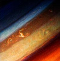 Всякий, кто наблюдал планеты в телескоп, знает, что на поверхности Сатурна, то есть на верхней границе его облачного покрова, заметно мало деталей и контраст их с окружающим фоном невелик. Этим Сатурн отличается от Юпитера, где присутствует множество контрастных деталей в виде темных и светлых полос, волн, узелков, свидетельствующих о значительной активности его атмосферы.