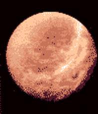 Сатурн, вторая по размеру планета Солнечной системы, представляет собой огромный быстро вращающийся (с периодом 10,23 часа) шар, состоящий преимущественно из жидкого водорода и гелия, окутанный мощным слоем атмосферы. Экваториальный диаметр по верхней границе облачного слоя составляет 120536 км, а полярный - на несколько сотен километров меньше. В атмосфере Сатурна содержится 94% водорода и 6% гелия (по объему). Отметим, что в атмосфере Юпитера его 19%. Дефицит гелия на Сатурне объясняют гравитационным разделением гелия и водорода в недрах планеты: гелий, который тяжелее, постепенно оседает на большие глубины (что, кстати говоря, высвобождает часть энергии, "подогревающей" Сатурн). Другие газы в атмосфере - метан, аммиак, этан, ацетилен, фосфин - присутствуют в малых количествах. Метан при столь низкой температуре ( около -188 С)находится в основном в капельно-жидком состоянии. Он образует облачный покров Сатурна.
