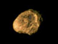 - никак не подтверждает свою внутреннюю деятельность. Неправильная форма спутника вызывает необычное явление: Каждый раз, когда гигантский Титан и Гиперион сближаются, Титан гравитационными силами меняет ориентацию Гипериона, что по изменяющемуся блеску спутника можно отследить с Земли. Неправильная форма Гипериона и следы давней бомбардировки метеоритами позволяют назвать Гиперион старейшим в системе Сатурна.