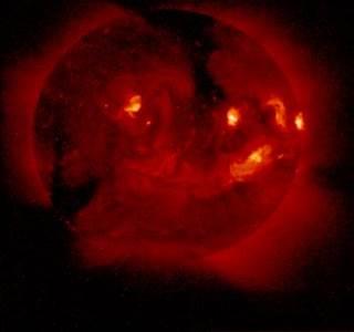 Самое мощное проявление солнечной активности – это вспышки. Они происходят в сравнительно небольших областях хромосферы и короны, расположенных над группами солнечных пятен. По своей сути вспышка – это взрыв, вызванный внезапным сжатием солнечной плазмы. Сжатие происходит под давлением магнитного поля и приводит к образованию длинного плазменного жгута или ленты. Длинна такого образования составляет десятки и даже сотни тысяч километров. Общее количество энергии, выделяющееся в результате взрыва, может составлять в зависимости от его силы от 1023