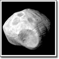 . Имеется два близкие к планете слабы (+11.5m и +12.5m), спутника (Фобос и Деймос), открытые в 1877 г.; расстояние Фобоса от центра планеты 2.77 ее радиуса, а период обращения 7 часов 39 минут 14 секунд, что меньше периода вращения Марса и Фобос восходит на западе. Деймос обращается на среднем расстоянии в 6.96 радиуса планеты с периодом 30 часов 17 минут 5 секунд. Оба спутника имеют неправильную форму. Размеры Фобоса 22-25 км, Деймоса – около 13 км.