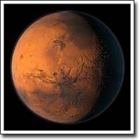 Четвертая планета Солнечной системы, удаленная от Солнца на среднее расстояние 228 млн. км, примерно вдвое меньшая Земли (экваториальный радиус 3394 км) и в девять раз меньше по массе (6.421*1023