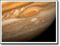 кг (в 318 раз больше земной и около 1/1050 солнечной). Экваториальный радиус 71400 км (в 11.2 раза больше земного). Полярный радиус заметно меньше экваториального (66900 км), сжатие большое (1/16); средняя плотность 1.3 г/см3; видимый угловой диаметр около 40″; видимая "поверхность" представляет собой сплошной облачный покров с множеством непостоянных деталей; исключение – Большое красное пятно наблюдавшееся еще в XVII в. При помощи космических аппаратов найдено еще несколько устойчивых красных пятен меньшего размера; наиболее заметны темные и светлые красноватые полосы, параллельные экватору – следствие зонального ветра. Период осевого вращения увеличивается с широтой: от 9 часов 50 минут 30 секунд у экваториальных областей до 9 часов 55 минут 40 секунд на средних широтах. Основные компоненты атмосферы – молекулярный водород Н2