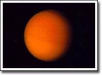 Самый большой спутник Сатурна Титан на редкость интересен: он единственный из спутников Сатурна обладает атмосферой. В Солнечной системе есть еще только один спутник с атмосферой - спутник Нептуна Тритон. Атмосфера Титана представляет собой толстый слой облаков, в основном состоящих из азота. Такая атмосфера похожа на земную, но по сравнению с ней содержит больше метана и этана - химических соединений, содержащихся в смоге. Слой смога, возможно, там такой плотный, что на Титане могут идти дожди из этой "топливной смеси". В атмосфере Титана найдены химические соединения, имеющие органическую природу. Это дает повод некоторым говорить о возможности жизни на Титане. Из-за толстого слоя облаков условия вблизи поверхности Титана остаются неизвестными. Фотография, которую Вы видите, была получена аппаратом "Вояджер-1", пролетевшим около Титана в 1980 году. В последнее время Титан более тщательно исследован космическим телескопом им. Хаббла.