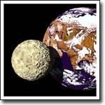 кг) и радиусом 1738 км, находящийся на среднем расстоянии от Земли 384404 км. Сидерический период обращения вокруг Земли 27.32 сут., синодический – 29.53 сут. Возраст близок к возрасту Земли и Солнечной системы (не менее 4.5 млрд. лет). Поверхность испещрена кратерами самых различных размеров и покрыта слоем пыли. Шесть раз посещалась космонавтами США.