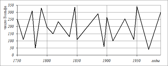 Швейцарский астроном Рудольф Вольф уточнил, что средний период изменения числа пятен составляет не 10, а 11 лет. Он же предложил для количественной оценки активности Солнца использовать условную величину, называемую с тех пор числом Вольфа