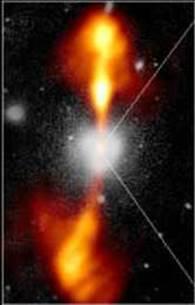 Лишь вестник радиоволн может быть черной дырой, еще не полностью закрытой «капсулой» искривленного пространства. Советский физик Яков Зельдович и его американский коллега Эдвин Солпитер сообщили о разработанной ими модели. Модель показала: черная дыра притягивает газ из окружающего пространства, и вначале он собирается в диск возле нее. От столкновений частиц газ разогревается, теряет энергию, скорость и начинает по спирали приближаться к черной дыре. Газ, нагретый до нескольких миллионов градусов, образует вихрь, имеющий форму воронки. Его частицы мчатся со скоростью 100 тысяч километров в секунду. В конце концов вихрь газа доходит до «горизонта событий» и навечно исчезает в черной дыре.