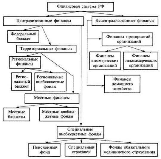 Финансовая система РФ, как любого федеративного государства, также имеет три уровня: центра, регионов и местных органов самоуправления. Эта часть финансовой системы находится в распоряжении государства и выступает как централизованные финансы. Одновременно функционируют децентрализованные финансы.