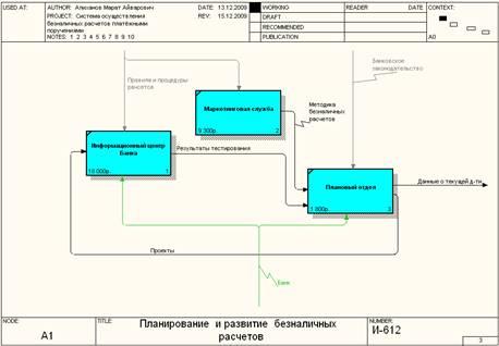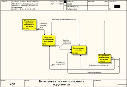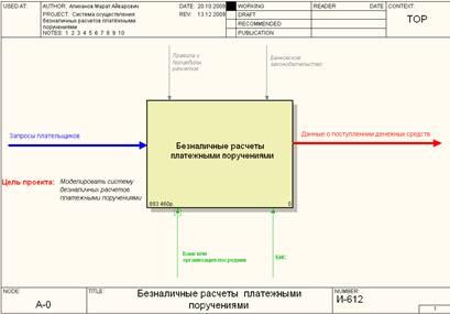 Функциональная модель предназначена для описания существующих бизнес-процессов на предприятии (так называемая модель AS-IS, т.е. "как есть") и идеального положения вещей - того, к чему нужно стремиться (модель TO-BE, т.е. "как будет"). Методология IDEFOпредписывает построение иерархической системы диаграмм - единичных описаний фрагментов системы. Сначала проводится описание системы в целом и ее взаимодействия с окружающим миром, после чего проводится функциональная декомпозиция - система разбивается на подсистемы и каждая подсистема описывается отдельно. Затем каждая система разбивается на более мелкие и т.д. до достижения нужной степени подробности. После каждого сеанса декомпозиции производится сеанс экспертизы: каждая диаграмма проверяется экспертами предметной области, представителями заказчика, людьми, непосредственно участвующими в бизнес-процессе. Такая технология создания модели позволяет построить модель, адекватную предметной области на всех уровнях абстрагирования. Основу методологии IDEFO составляет графический язык бизнес-процессов. Модель в нотации IDEFO представляет собой совокупность иерархически упорядоченных и взаимосвязанных диаграмм. Модель может содержать четыре типа диаграмм: