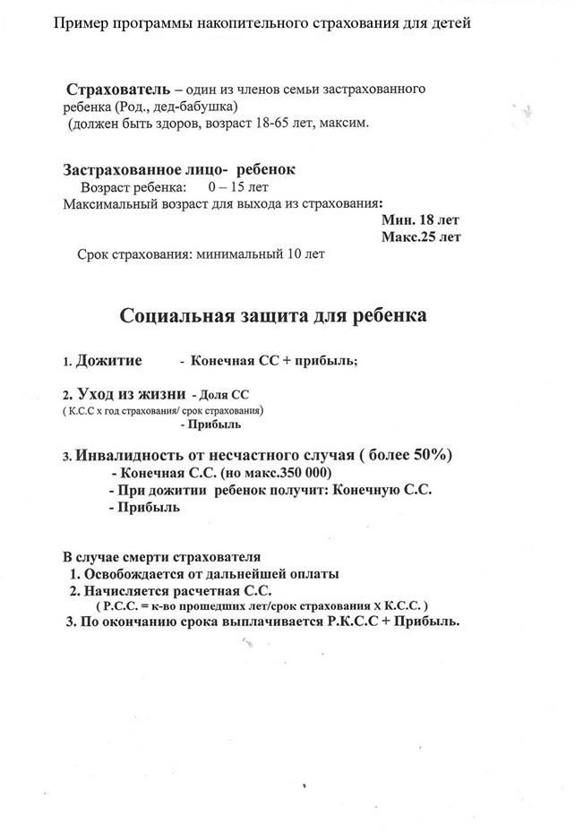 Пример накопительной системы страхования