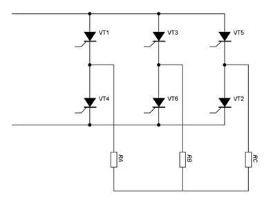 .9 Приведите пример реализации трехфазного тиристорного инвертора тока. Поясните алгоритм работы тиристоров.