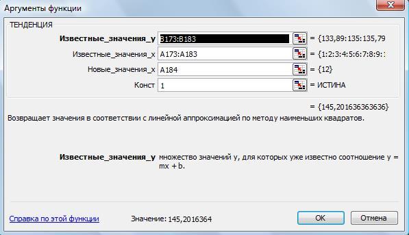 ТЕНДЕНЦИЯ – возвращает значения в соответствии с линейной аппроксимацией по методу наименьших квадратов.