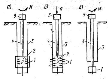 Рис. 2. Схемы испытаний грунта в скважинах на срез.