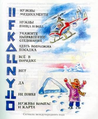 Если нет возможности развести костер или использовать для подачи сигнала красную ракету или зеркало при появлении поискового вертолета, надо размахивать светлым предметом на темном фоне или темным предметом на светлом фоне.