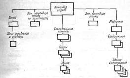 случаях, когда формирования действуют совместно с подразделениями частей ГО, специальная обработка формирований и населения может проводиться на пунктах специальной обработки (ПуСО), развертываемых частями ГО (рис. 58). Для развертывания ПуСО используются дегазационно-душевые автомобили 6,