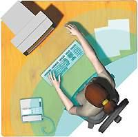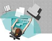 Итак, обобщив все высказанные соображения, в качестве практически идеального рабочего места можно представить себе некую угловую структуру с передним краем в форме лекала. Общая занимаемая ею площадь оптимальна, если ее установить в углу, а «мертвое», недоступное пространство занять монитором. Его сглаженный полукруглый передний край образует дугу вокруг пользователя, обеспечивая оптимальную зону доступа.