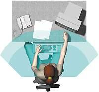 «А на чем же лучше всего сочетать длительные компьютерные и письменные работы?» — возникает естественный вопрос. Ответ на него таков: в основном пригодность и функциональность любого стола определяет его рабочая зона. Та часть столешницы, до которой работающий человек дотягивается рукой с прижатым к туловищу локтем, считается ближней зоной охвата, а то место, куда он может дотянуться, полностью выпрямив руку, — границей дальней зоны.
