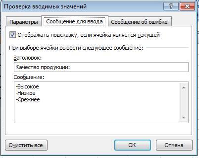 1.6. Можете задать сообщение для ввода (подсказки) при выделении ячейки:
