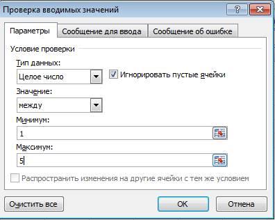 введите в поле «Минимум» — «1», а в поле «Максимум» — «5».
