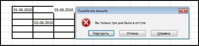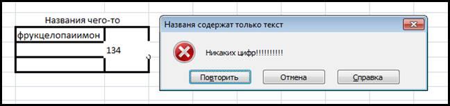1.8. Протестируйте правильность работы проверки данных. Попробуйте ввести в ячейку сначала допустимые, а потом недопустимые данные и убедитесь, что параметры проверки установлены правильно и сообщения появляются в нужный момент.