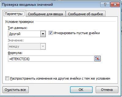 1.3. В диалоговом окне Проверка данных откройте вкладку Параметры.