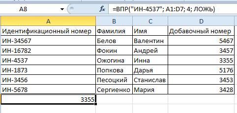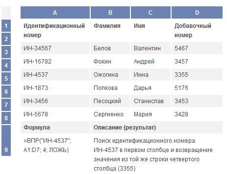 5. http://office.microsoft.com/ru-ru/excel/HP100704621049.aspx?pid=CH100799991049#Look up values vertically in a list by using an exact match