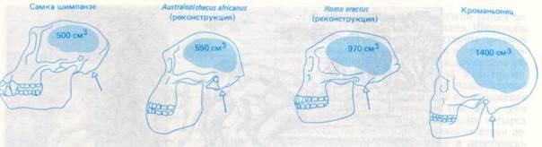 Давления отбора, обусловившие эволюцию самой выдающейся особенности человека - большого головного мозга, все еще неясны и широко обсуждаются. Это обсуждение затрудняется тем, что ученые так и не пришли к единому мнению по вопросу о том, какова зависимость между величиной мозга и развитием кистей рук, с одной стороны, и разумным поведением-с другой. Мы до сих пор все еще недостаточно хорошо изучили собственный мозг, не говоря уже об оставшемся в далеком прошлом мозге древних гоминид, а поэтому можем лишь строить догадки о том, когда и при каких давлениях отбора происходили те или иные изменения.