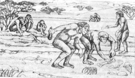 Рис. 5. Использование грубых каменных орудий австралопитеками.