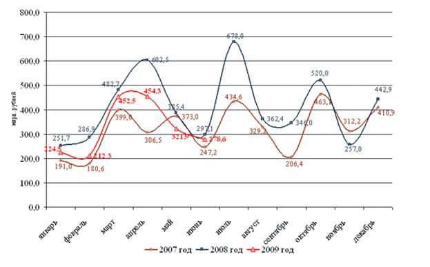Согласно данным рисунка 5, наблюдается сокращение субсидий региональным бюджетам. Если в 2008 г. регионам было выделено порядка 445,0 млрд. руб., то в 2010 г. сумма субсидий сократилась до 286,0 млрд. руб.