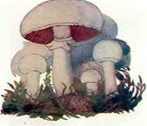 Поганка бледная. - Симптомы: через 68 часов и позже возникают неукротимая рвота, коликообразные боли в животе, понос с кровью. На 2-3 день появляются признаки печеночной и почечной недостаточности, желтуха, увеличение и болезненность печени, анурия. Развивается коматозное состояние. Смертность достигает 50%.