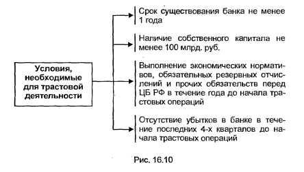 Однако формирование трастовых подразделений может производить только такой коммерческий банк, который выполняет ряд условий (см. рис.2.6)