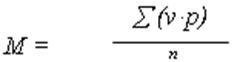 Легко посчитать и среднее значение данного признака. Для этого используют формулу:  Где М - средняя величина признака, в числителе сумма произведений вариант на их частоту встречаемости,