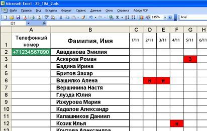 - реализация процесса передачи SMS родителям