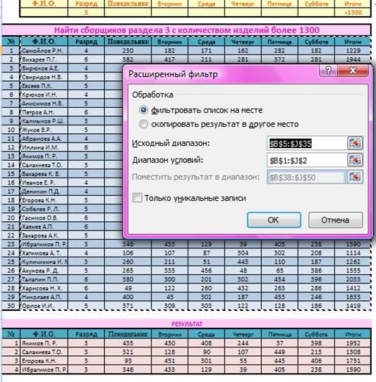 К примеру, при нажатии кнопки «Автофильтр», программа автоматически выдаст все данные по сборщикам, удовлетворяющим данные условия.
