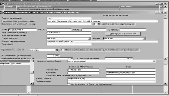 1. Создали новую организацию и банк: Главное меню—Управление договорами--=Н=--Заполнение каталогов—Организации и банки—F7. Ввели необходимые реквизиты.