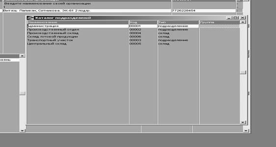 2. Сформировали перечень подразделений и складов организации: Настройка—Заполнение каталогов—Подразделения и склады—F7