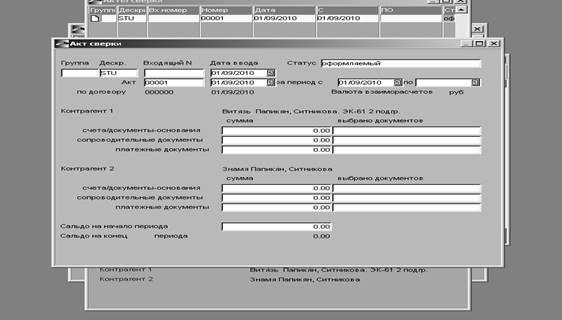 В поле акта сверки установили соответствующие даты, вызвали контекстное меню и выполнили команду « автоматическое формирование акта сверки». В случае верного выполнения предыдущих заданий по договору Дог-1 сальдо должно быть нулевым.