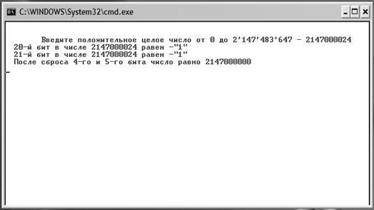 ^32 бит –знак числа в длинном целом. В данном примере можно не учитывать, что не скажется на результате, так как нужно определить 20 и21 бит и сбросить 4 и 5. Необходимо лишь, чтобы вводимое число было в диапазоне от 0 до 01111111111111111111111111111111(2)