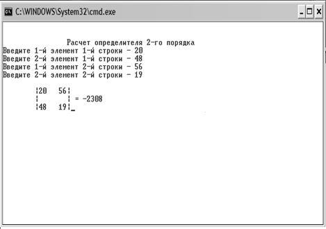 printf ("\n\n\t\tРасчет определителя 2-го порядка\n\n\n\r");