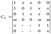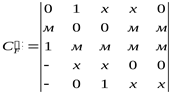 Отбираем маскирующий куб См1= м00мм,имеющий максимальную стоимость. Таким образом исходное покрытие разбивается на три части. Вверху располагаются кубы, которые не покрываются маскирующим кубом. Затем записывается маскирующий куб. Под ним записываются отмаскированные кубы с прочерками на тех координатах, которые не равны µ в маскирующем кубе.
